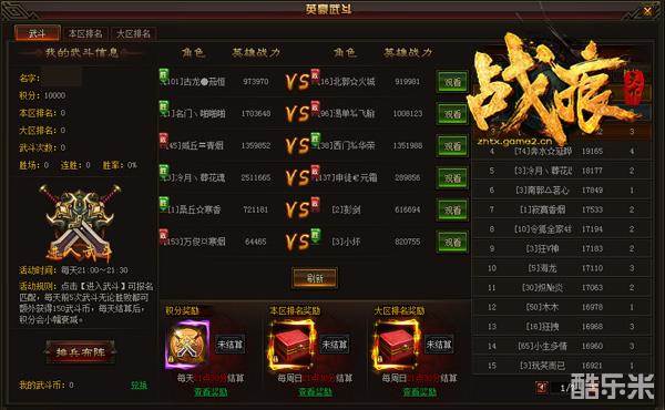 1.哥们网《战痕天下》的英豪武斗属于定时活动,在每天晚上的21:00-21:30准时开启,届时,在游戏页面会出现一个英豪武斗的标志,玩家直接点击即可进入武斗页面。
