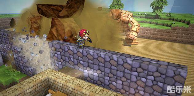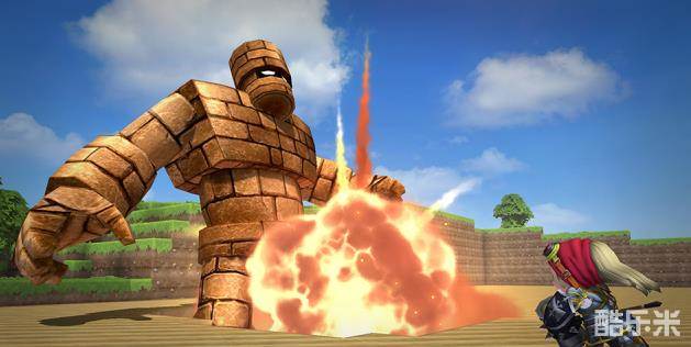 在《勇者斗恶龙》系列作品中最为人津津乐道的还有与强敌之间的战斗,即使本作方块RPG,也能让玩家感受到手心出汗的刺激感。为了阻止主角复活小镇,龙王会派遣手下的怪物们去干扰主角。图为梅尔基德地区的BOSS格雷姆,格雷姆DQ系列经典怪物,体型庞大,并且会投掷岩石攻击主角甚至小镇。