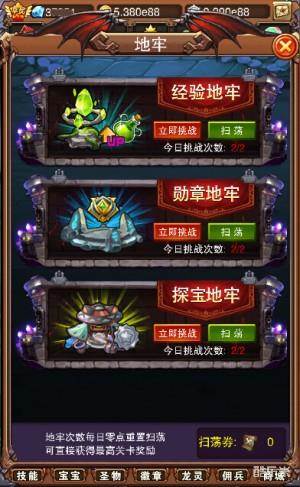 黑漆漆的地牢有点阴暗,里面隐藏着未知的怪兽,鼓起勇气去闯关试试吧,说不定有惊人的收获在等你。地牢系统分为经验地牢和勋章地牢、探宝地牢,分别可获取佣兵经验、徽章材料、龙灵装备,不过策划大大说了,以后地牢还会加入其它必备游戏资源。