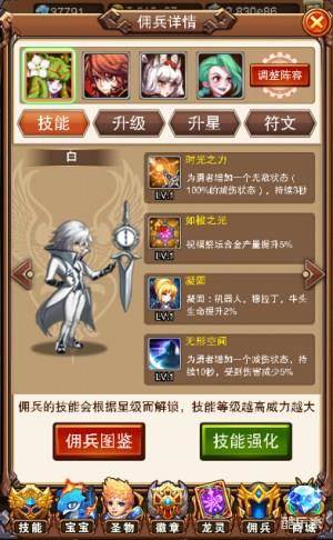 佣兵作为一个不可忽视的战斗部队,之前给予的地位太低,现特地将佣兵独立,出战部队从原先的一个佣兵增加至四位。佣兵将拥有四大属性:技能、升级、升星、符文。符文搭配龙灵卡牌增加攻击力,而每次升星会获得天赋点,可解锁技能或升级技能。
