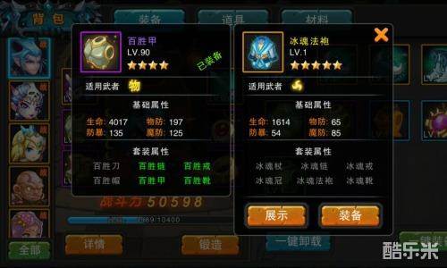 杀神的装备分为不同颜色和不同的种族,不一定橙色的就是最好的,装备的适用武者会根据提示显示基础的属性和种族,当装备组合集齐相同的六件,就可以打开隐藏的属性。