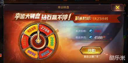 手上还有钻石的玩家可以行动起来了,因为这个活动是有时间限制的,也就还剩两天时间。大家在做这个活动的时候,一定要看好转盘上的数字,如何有比消耗小的数字的话,那就要谨慎考虑了。反正小编转的几次,都是稳赚不亏的。