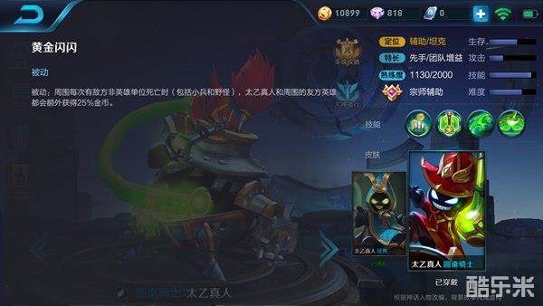 周围每次有敌方非英雄单位死亡时(包括小兵和野怪),太乙真人和周围的友方英雄都会额外获得25%金币。