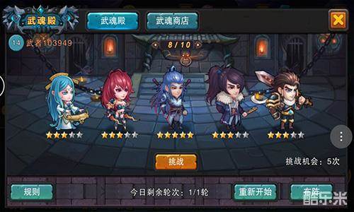 按每天不同的任务挑战,最后一项奖励经验的任务是武魂殿,其实,武魂殿特别的好打,队伍的等级只要到了20级就可以开启武魂殿。