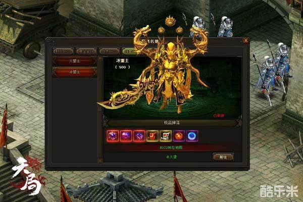 萌乐网《天局》中,玩家击杀对立阵营BOSS可以获得会心宝石、战神披风、勇士披风、翅膀升级丹、坐骑升级丹等道具奖励。