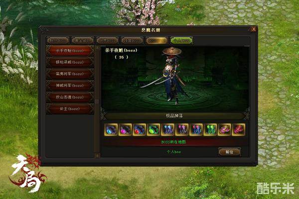 萌乐网《天局》中,玩家击杀个人BOSS可以获得各类神武装备、卓越神武装备。