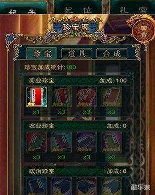 藏宝图可以马上使用,也可以存着等日后国力很高时再使用。贵重首饰可以赏赐给你喜欢的嫔妃,增加其魅力的同时增加后宫总值,也可以出售获得白银,去给大臣升级,去给礼官升级。