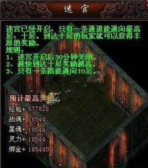现在,迷宫副本中新增迷宫宝箱,迷宫开启后,系统将会一次性在每层迷宫中刷新一定量的宝箱,玩家可以通过打破宝箱来获得奖励。当玩家在迷宫地图中待满一分钟,系统将会根据玩家当前所在迷宫层数,给予玩家不同的经验奖励,而且所在层数越高,经验奖励越多。