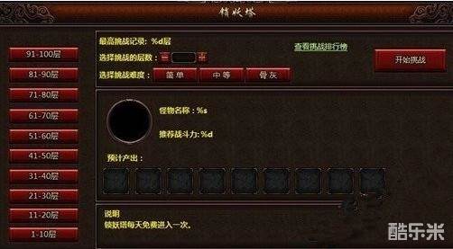 挑战玩法: 玩家必须清光本层所有怪物后,才可以进入下一层,每一层怪物实力都有所提升。