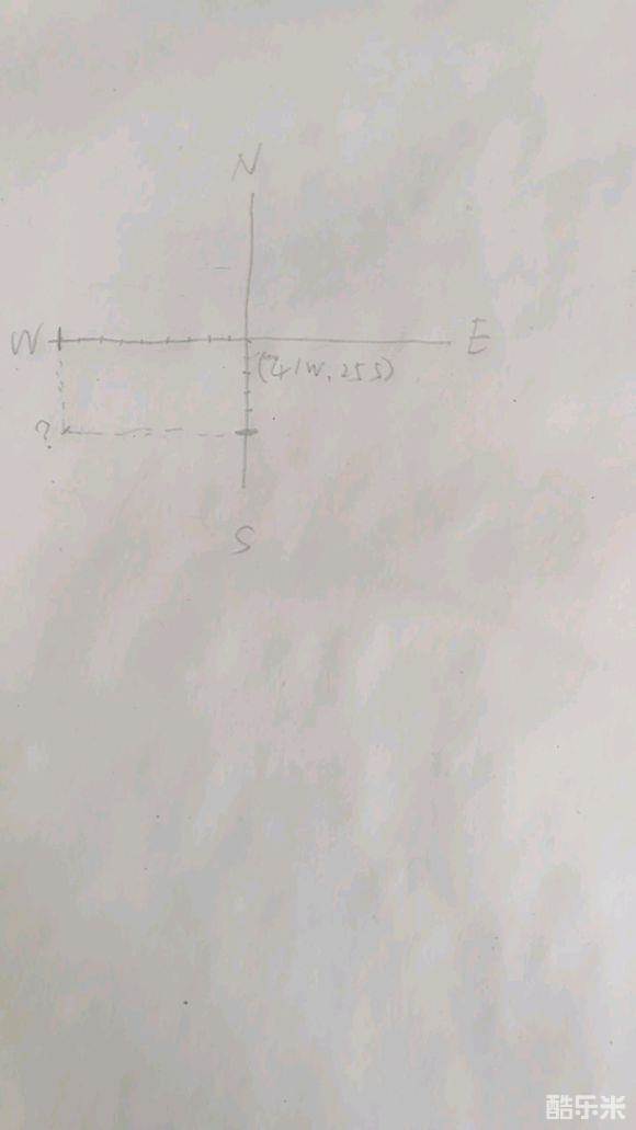 接下来,以你目前所在地的坐标为原点,这里我们假设是41w,25s(山洞)。