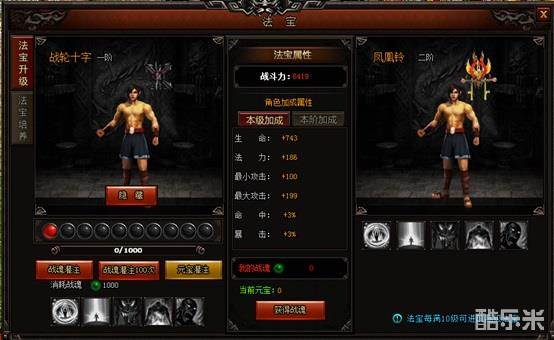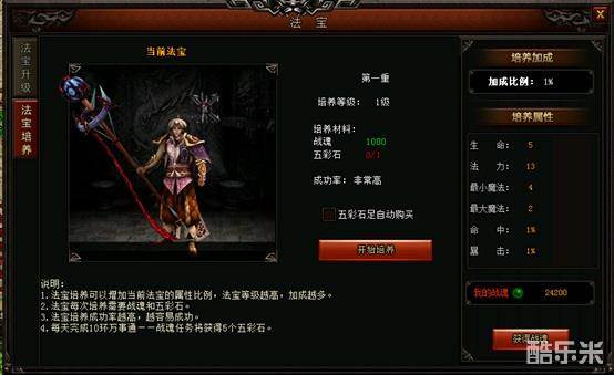 玩家通过消耗战魂和五彩石来进行法宝培养。