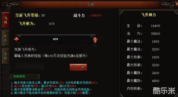 新一次更新,飞升等级开放至50级,可以激活5阶圣衣,达到此级别,可开启飞升技能哦。各职业的飞升技能都不相同,各有各的长处。其中,战士飞升技能为强化烈火剑法,可扩大烈火剑法的攻击范围,同时额外增加一个攻击目标;法师飞升技能是元素掌控,每次施放火球术、雷电术和冰箭术时,都有20%的概率进行一次额外的攻击;道士飞升技能为幽冥之触,每次施放灵魂火符时,都有20%概率进行一次额外攻击。