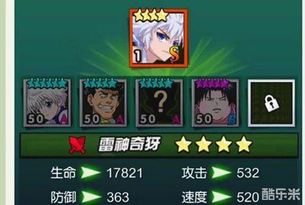 雷犽的合成需要消耗4个5星50级的猎人和80万金币。合成后的雷犽是S级猎人,在属性上有了很大的提高。雷犽是中后期重要的输出。平民玩家在没有强力西索的情况下,雷犽承担着主要的输出任务。