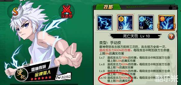 雷犽的核心技能是他的手动技,可以给敌方造成4段攻击。前3段攻击敌方前排,第4段攻击敌方全体。满级可造成攻击力900%的伤害,每段攻击中附加敌方生命值上限8%的真实伤害。手动技一次32%生命上限的真实伤害,让雷犽成为打boss刷副本的重要输出。雷犽的被动技可以削减敌方的生命上限,觉醒技可以给敌人增伤给自己减伤(觉醒技的前提是速度比对方快)。