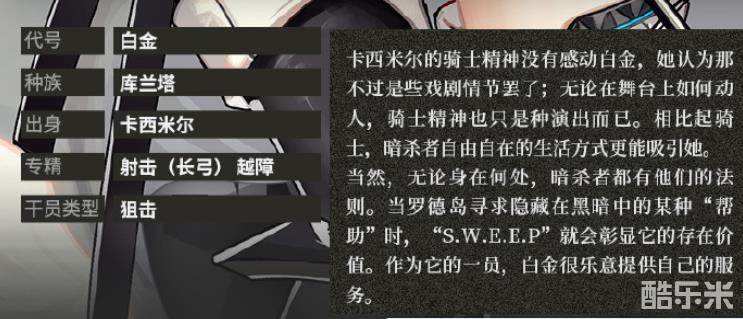 以上就是《明日方舟》狙击干员白金的角色介绍。