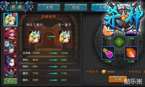 境界分为修炼武者、后天、先天、人位、百劫、地位、涅槃、天位、通神、真神、神王、源神、虚神、始神、不朽、域祖16个境界,每个境界又分为三重天;境界可通过“突破”功能进行提升。