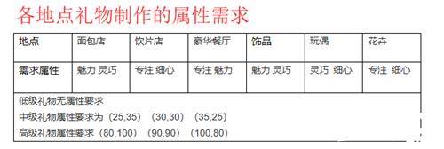 制作礼物共涉及四种属性,而兼职的第五种属性幸运,大概率和获得的额外奖励有关,更直观的说,和你获得钻石的概率有关,当然这个有没有确实影响我不太确定。