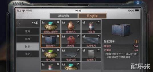 建筑作用:智能笼子只能摆放在天花板下,敌人被困后,只能摧毁铁笼才能离开。