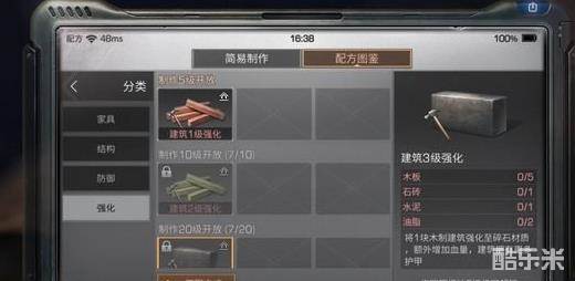 建筑作用:建筑3级强化是可将1块木制建筑强化至碎石材质,额外增加血量,建筑拥有更多护甲。