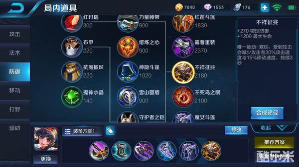 补充:巡守利斧在出完破军时建议升级为巨人之握。娜可露露没有硬控所以很害怕控制,因此,在鞋子的选择上推荐抵抗之靴,玩家也可以根据阵容和局势选择其它鞋子。名刀·司命是娜可露露的首选,也可替换贤者的庇护。