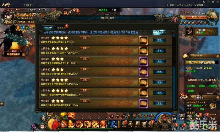 在哥们网《大战神》新手阶段,玩家最经常遇到的就是一个个主线任务,玩家跟着任务可以领略到游戏的历史背景、获得极为可观的经验值和道具奖励,最重要的是在游戏中很多玩法都需要过了主线某一章才可以开启。