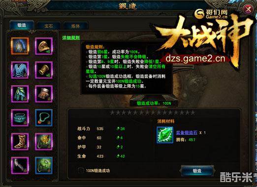 哥们网《大战神》强化最高可以到15星,对于普通玩家来说7星是毫无问题的,那么如果还想继续增加实力可以拼拼人品升10星。