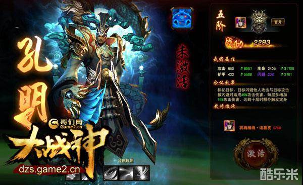 以上就是哥们网《大战神》诸葛亮的详解,从技能描述中可以发现这是一个攻守兼备的神级武将,赶紧打开游戏,召唤一个吧!