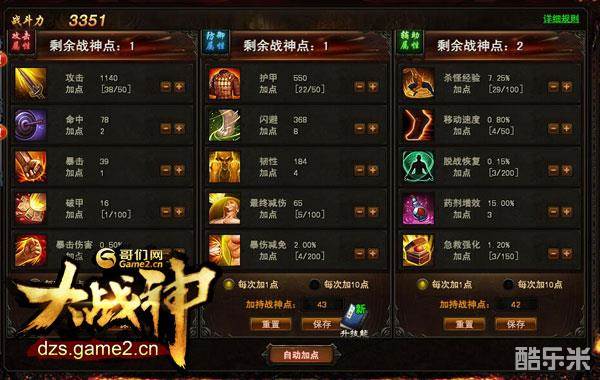 随着战神的升级,战神还能获得战神点用在攻击属性、防御属性以及辅助属性上进行玩家能力的强化,是战神系统最为重要的玩法。