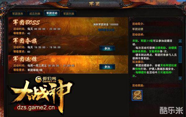 可以说,在哥们网《大战神》中,大部分的行为都是以军团为单位进行的,所以在初入游戏,寻找个好的军团至关重要。