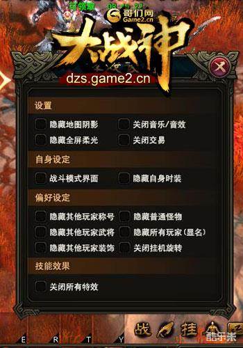 为了针对不同电脑配置的用户,哥们网《大战神》为玩家提供了大量的特效开关,玩家可以在自己电脑能够承受的范围内增减特效。如果你的电脑配置高过小编上面给的这套方案很多,那么放心的把全部特效打开,立即体验史无前例的3D游戏画面。