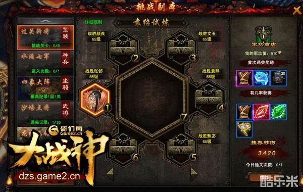 每过一关玩家都能积累军功值,在挑战系统界面的军功商店能兑换许多实用的道具。