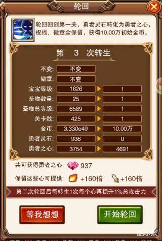人只有一生,只有一个轮回,挂了就没有从头再来的机会,想尝试轮回转生的滋味吗?来乐趣《部落大乱斗》中体验,轮回之后真的是完全从头再来,不过轮回后会增加你的各方面属性,成就系统相关的成就:轮回岁月,让你欲罢不能。轮回岁月成就能让你增加总攻击力,让你在浴火重生之后增加实力可以蔑视天下,专揍不服者。