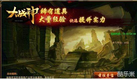 在阴森恐怖的陵墓之中,想要摸金成功过程无比凶险,没有一定实力只能白白葬身于此,因此只有玩家达到64级以后才可以在每天10:00-24:00进入。密室之中,瘴气弥漫,为了保障安全,玩家只能在皇陵挂机寻宝2个小时以防吸食毒气过量,时间宝贵,想要收益多就只能自行努力!