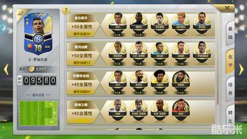 作为皇马绝对核心,世界前二的足球运动员,C罗自然是这场比赛皇马这边的重要人物,而他也是游戏中唯二的SSS球员卡。可以看到C罗是激活皇马前场攻击化学反应的最重要卡牌。而SSS球员卡,不但较之SS卡牌会多一个技能,人物等级上限高出10级之外,还能穿搭更多更强的装备来提升球员能力值。