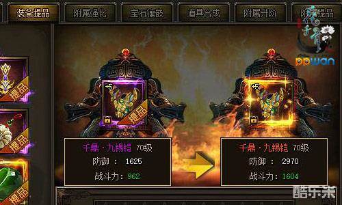 2、而装备提品,装备的等级不会改变,但是装备的本质会发生巨变!同样如单件70级橙色妖·飞焰裤提品后将变为70级红色妖·飞烟裤,战力提升426,全部十二件可想而知。