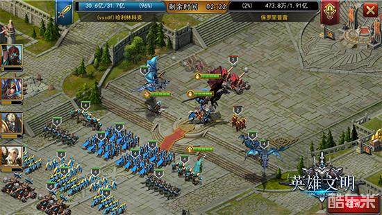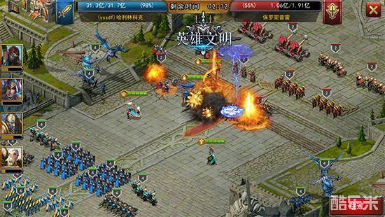 在英雄文明中,战斗的结果会通过邮箱战报的形式告知玩家,详细反馈伤亡、战利品、双方兵力、坐标位置、时间等信息,战斗的过程也可以进行回放。为了给玩家有更真实的战斗体验和代入感,整个对战的过程,游戏中做得丝毫不马虎。具体表现在每个兵种、英雄都有自己的AI,能智能地选择攻击对象;无论是小兵、英雄、还是建筑物都有血条,能实时显示对战伤亡情况;如截图,左边可见英雄目前的状态。玩家甚至能看到整个城堡逐渐被己方军队攻陷、占领的全过程。
