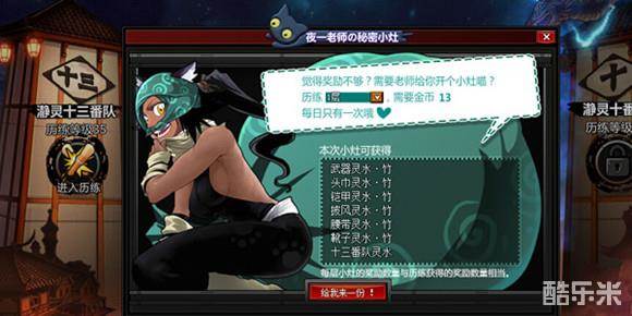还有就是吃小灶什么的最开心了。在我去玩《死神狂潮》中和瀞灵神殿的守卫番队进行历练增加本领也是必须的。可没想到的是在最后要是对自己收获的奖励不满意居然还能吃小灶这样待遇可不一般啊。自然是开心的不行不行的。这样的好福利真的是天下独一份,得此游戏夫复何求啊!