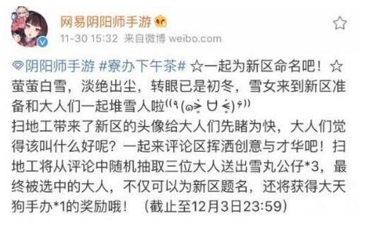 就在玩家们还在猜疑的时候,一个重磅消息降临,阴阳师的官方微博发文称即将开设新区,希望玩家更为这个新区命名。要是记得没错的话,上一次官方这么做的时候,SP茨木就降临了,开新区出新SSR、SP式神,这样的套路好像官方也用过了无数次。