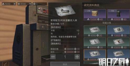 买好配方之后就能在自己庄园中的建材加工台上进行制作了,制作双人床需要的材料是10个木板+2个布。