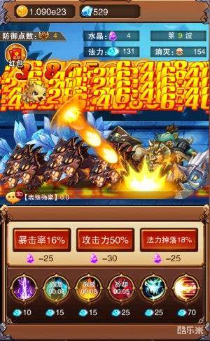 虽说宝宝临危受命,实力突破自身限制,但是每个成功的大将军背后都有无数个士兵。而我们就是宝宝大将军的坚强后盾,勇者可以根据法力值的多少发动技能:闪雷、减速、火海、加速、击退、终极。技能结合的好,才能阻挡怪物大军的突击。
