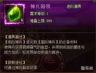 神兵陨铁:用来进阶神兵。