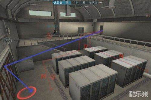 ①首先,潜伏作为进攻方必须要清楚保卫的防守站位。下面将用保卫常规防守缩防来举例。从图中,我们可以看到,防守的B点只有2个人加上一个卡复活点的人协防B。