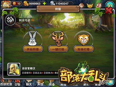 当玩家的内政厅等级达到20级后,就能在要塞中看到狩猎场。每天凌晨狩猎场将会固定刷新3次狩猎次数,每次狩猎开始将会给玩家标配70支弓箭。如果玩家的VIP等级提升,在后期还会在狩猎的基础上获得“一键打猎”和“双倍打猎”的功能。所谓“一键打猎”就是花费金币直接完成打猎,而“双倍打猎”则是打猎时所获奖品翻倍。因为手动狩猎命中率有限,所以“一键打猎”和“双倍打猎”能够帮助你获得更多的奖励哟!