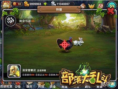 在狩猎场中,玩家可以尽情地享受狩猎的乐趣,大到黑熊、野猪,小到兔子、野鸡,都可以成为玩家的猎物。其实狩猎也并不像你想象中那么简单,小动物虽然只需要一箭就可以俘获,但是小动物体积小并且活动迅速,容易让玩家扑空。大型动物虽然体积大、易命中,但是却要耗费两到三支箭才能捕获。是选择大型动物还是小型动物,需要玩家细细斟酌。更重要的是,射杀这些猎物能够获得银币、正义和体力等,这些对于刚刚建立自己要塞的指挥官们来说是非常重要的哦!