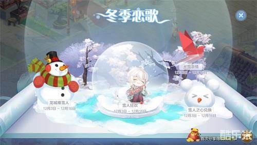 雪人狂欢,玩家参与丢雪球即得活动道具,凭道具即可兑换全新时装等10重福利;龙城堆雪人,全服玩家共同收集道具堆雪人,每人都能获得幸运筹码等13款道具;大雪浓情,爱神F4携手玩家为幻想大陆送温暖,丰厚答谢礼等待着爱心人士领取。此外,玩家首次分享“冬季恋歌”活动,还能100%获得588元宝,简单粗暴温暖广大玩家的心!