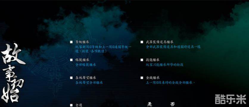 下面这图便是读取100号存档后的情况,会问要不要继承