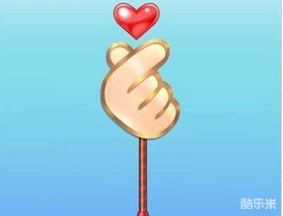呐,给你我的小心心~红黑相间的手杖顶端为一只肉嘟嘟的小手,大拇指与食指相交形成比心手势,红彤彤的爱心随手势出现,十分可爱。
