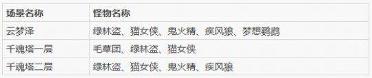 玩家可根据自己的等级选择适合的场景组队进行野外练级。10-19级可选择的场景有千魂塔一层,云梦泽,15级以上可到千魂塔二层练级。