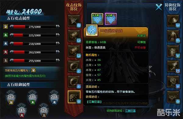 而在天赋界面中,最后的天赋加点也与纹饰有关。纹饰属性包括五行攻击和五行防御,天赋对五行攻击力的加成,也直接影响着五行攻击纹饰的属性效果,不同的职业也有不同的效果加成。如丐帮加成是木和土、少林加成是金、武当加成是水和火。