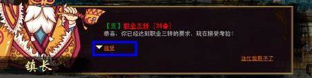 1.首先向镇长领取职业三转的任务,然后点击〖支〗职业三转